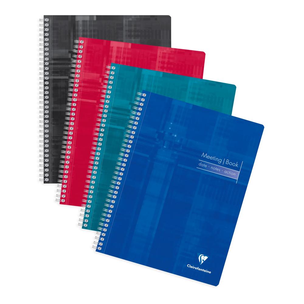 Dès 1950, Clairefontaine entreprend de proposer des cahiers tranchant par la qualité de leur papier, la gaieté et la solidité de leur couverture, sur les piètres articles de l'époque. Clairefontaine révolutionnera alors l'usage des cahiers et appuiera l'engagement de l'entreprise dans une quête permanente d'amélioration de la qualité. Désormais célèbre pour ses cahiers haut de gamme, Clairefontaine fabrique ses produits à base de papier uniquement avec des pâtes à papier provenant à 100% de forêts certifiées pour leur gestion environnementale. Grâce à des produits parfaitement en phase avec les besoins de tout à chacun, Clairefontaine fait partie intégrante de notre quotidien. Feuilles détachables micro-perforées et pré-imprimées avec les intitulés "DATE + NOTES + ACTION" pour simplifier la prise de notes pendant les réunions ! Reliure intégrale permettant une pleine ouverture, idéal pour l'utilisation recto/verso des feuilles ! Couverture carte pelliculée brillante et imperméable Papier Clairefontaine Vélin Velouté 90g, pour une sensation de glisse unique. Certifié PEFC, pour la gestion durable des forêts. Fabriqué en France