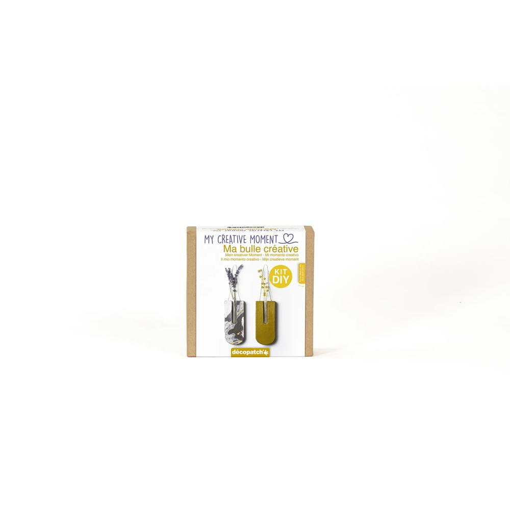 MA BULLE CREATIVE : kit pour toutes les personnes qui souhaitent se retrouver et prendre du temps pour elles. Kit complet pour (re)découvrir la technique Décopatch via la création d'objets de décoration tendances. REUTILISABLE : la boite du mini-kit est en papier-mâché, elle pourra donc être customisée elle aussi et servir de boîte de rangement. UTILISATION : Pour réaliser le mini-kit, déchirez ou découpez quelques morceaux de papier Décopatch d'environ 2x2 cm. Appliquez ensuite la colle sur le support. Enfin déposez un morceau de papier sur la surface encollée et mettre une deuxième couche de colle par-dessus. CONTENU : 2 soliflores 6,5x1x15cm, 2 feuilles de papier Décopatch 30x40cm, 1 pinceau 1,5x16,5cm et 1 pot de colle 45ml CREE EN FRANCE : Décopatch est une marque française appartenant au groupe Clairefontaine Rhodia. Située en banlieue lyonnaise, une équipe de passionnés cherche sans cesse de nouvelles idées pour répondre aux tendances de customisation, de décoration et de loisirs-créatifs.