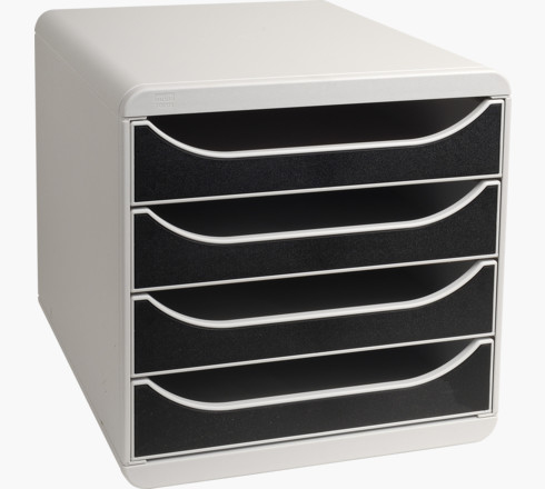 Le Module de classement Big Box d'Exacompta est composé de 4 tiroirs pour classer des documents en format A4 et A4+, des pochettes à élastiques 24x32cm ou des enveloppes grands formats. Il est adapté à un usage bureau, home office ou scolaire. Le caisson est conçu en un seul bloc. Il est ainsi plus résistant, ultra rigide et durable. Les façades des tiroirs sont ouvertes pour permettre de glisser les documents sans avoir à ouvrir les tiroirs. Les tiroirs sont agréables à utiliser, coulissants et silencieux équipés d'une butée d'arrêt de sécurité. Le module de classement est garanti 25 ans Ce module est fourni avec un jeu d'étiquettes Lundi à Dimanche dans plusieurs langues. Il existe de nombreux coloris.