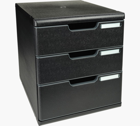 Le modulo est un système de classement élégant et fonctionnel composé de 3 tiroirs de 2 hauteurs différentes pour classer des documents en format A4 et A4+, des pochettes à élastiques 24x32cm, des enveloppes grands formats et même des classeurs à levier grâce à sa hauteur de tiroir importante. Il est adapté à un usage bureau ou scolaire. Les modulosSont juxtaposables et superposables et évolutifs grâce à 4 hauteurs de tiroirs différentes interchangeables Les façades des tiroirs sont fermées pour garder les documents l'abri de la poussière. Les tiroirs sont agréables à utiliser, coulissants et silencieux équipés d'une butée d'arrêt de sécurité. Respectueux de l'environnement, ce modulo est fabriqué en plastique recyclé issu des déchets ménagers. Il est ainsi certifié Ange Bleu. Le modulo est livré avec tous les clips et obturateurs nécessaires au montage et à la finition.