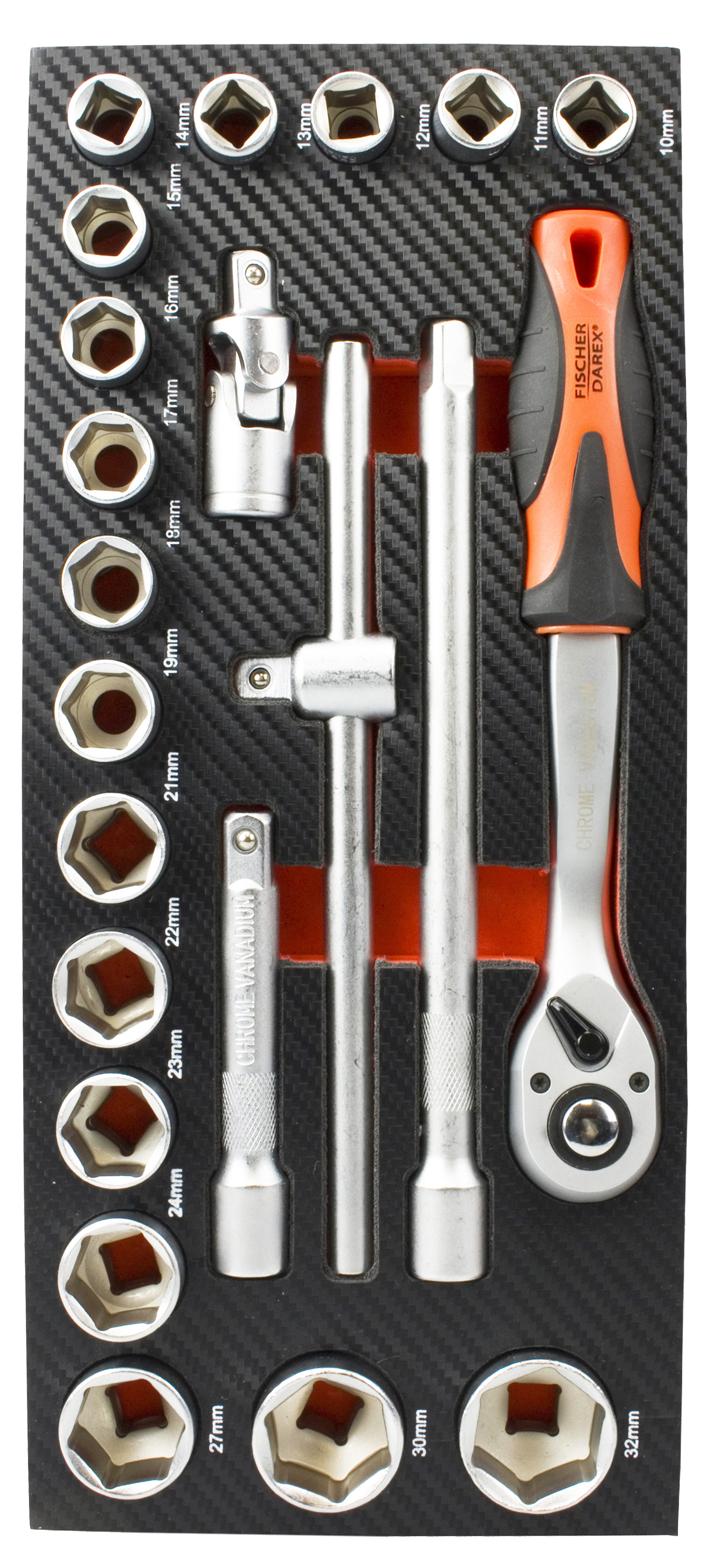17 douilles 6 pans 1/2" : 10 - 11 - 12 - 13 - 14 - 15 - 16 - 17 - 18 - 19 - 21 - 22 - 23 - 24 - 27 - 30 - 32 mm