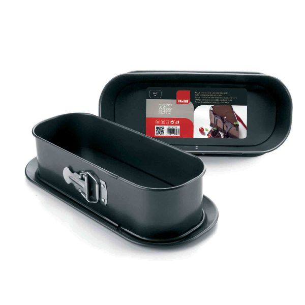 Moule à cake 30 cm démontable Moka - Réaliser toute sorte de gâteau ultra-facilement - Démoulage facile grâce au fond amovible et à sa charnière - Métal anti-adhérent - Dimensions : 30 x 11 cm - Hauteur : 8 cm - Avec base supplémentaire - Compatible four - Nettoyage facile : passe au lave-vaisselle.