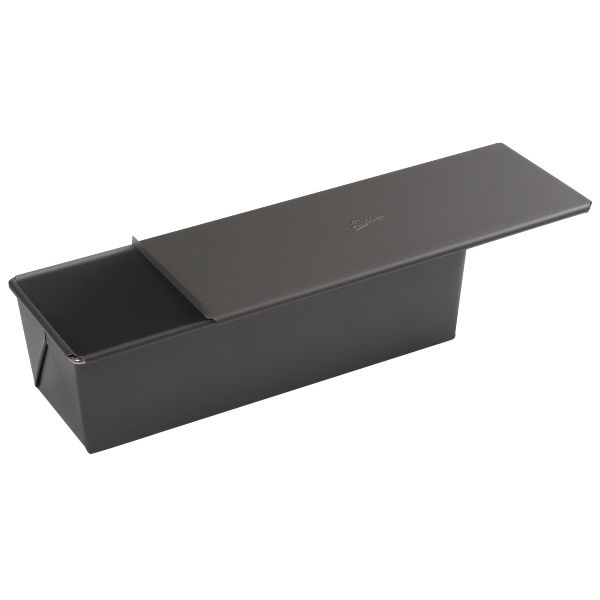 Moule à pain de mie - Le moule qu'il vous faut absolument pour réaliser votre propre pain de mie maison à la fois moelleux et savoureux ! - Son couvercle coulissant préserve le taux d'humidité du pain pendant la cuisson et permet à votre pain de mie d'avoir une forme carrée bien régulière - Il peut s'utiliser sans couvercle et devenir ainsi un moule à cake traditionnel pour vos cakes ou brioches - En acier revêtu - Démoulage facile - Dimensions 30.7 x 12 x 9 cm - Lavage à la main recommandé.