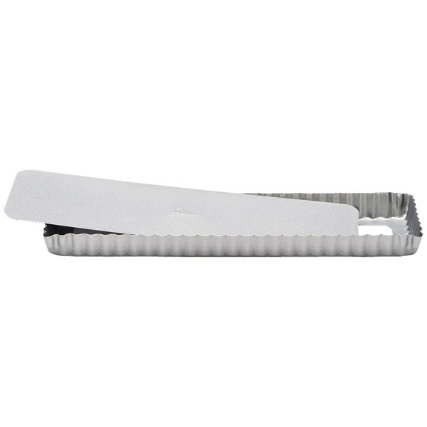 Moule à tarte rectangulaire 35 x 11 x 2.5 cm - Silver Top - Fond amovible - En acier chromé laminé à froid avec revêtement antiadhésif ultra-résistant aux rayures - Excellente conduction et répartition de la chaleur et donc une cuisson plus rapide et plus homogène - Idéal pour vos quiches et tartes aux fruits ! Résistant - Passe au four jusqu'à 230°C - Facile à nettoyer : passe au lave-vaisselle - GARANTIE 5 ANS.