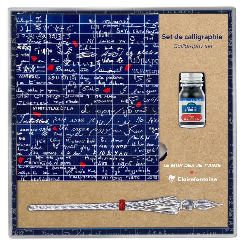 Inaugurée en 2000 à Montmartre, cette oeuvre de Frédéric Baron et Claire Kito célèbre l'amour universel à travers 612 carreaux en lave émaillée. Je t'aime y est inscrit en 250 langues, symbolisant l'unité et la paix. Lieu emblématique, il invite les amoureux du monde entier à célébrer l'amour dans toute sa diversité. Laissez libre cours à votre créativité et explorez l'art de l'écriture avec ce set de calligraphie élégant. Ce set contient l'essentiel pour s'initier à la calligraphie : une plume en verre, un flacon d'encre Rue de la Verrerie 10?ml Jacques Herbin et un bloc de 60 feuilles de papier blanc 185?g. Couverture pelliculage brillant pour imiter l'aspect des carreaux émaillés du mur. La qualité et la douceur du papier Clairefontaine, certifié PEFC et fabriqué dans les Vosges par Clairefontaine.
