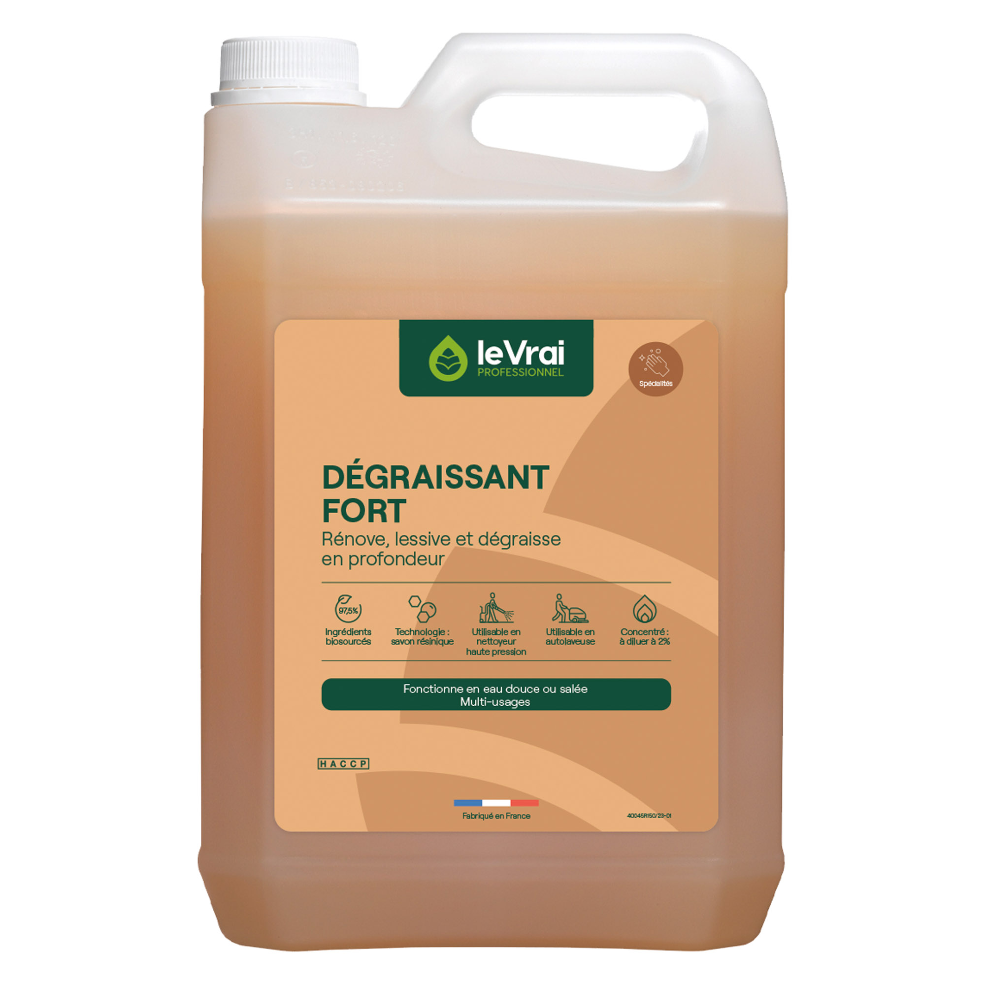 Dégraissant , lavant, nettoyant, parfumant pour de nombreux milieux : sols, murs, hottes, filtre à graisse, panneaux, cale au pont des bateaux, ...