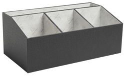Description détailléeCarton recyclé recouvert de papier texturé, 4 compartiments, dimensions: (L)277 x (P)115 x (H)147 mm