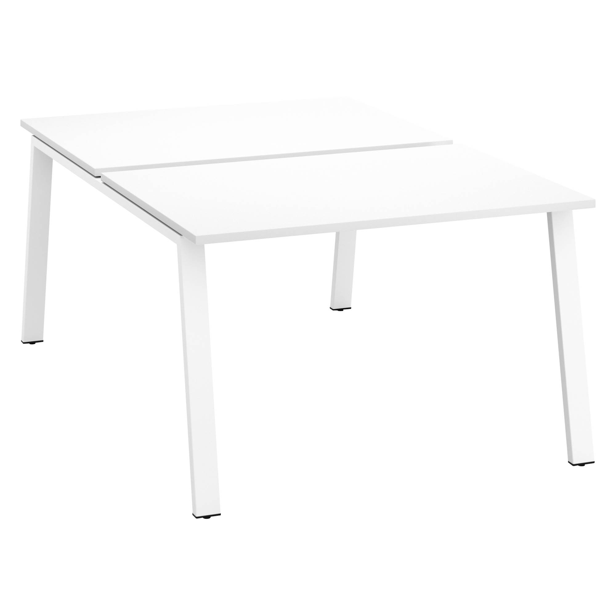 Piétement acier époxy anti-rayures en arche inclinée et poutre de renfort sous toute la longueur.
