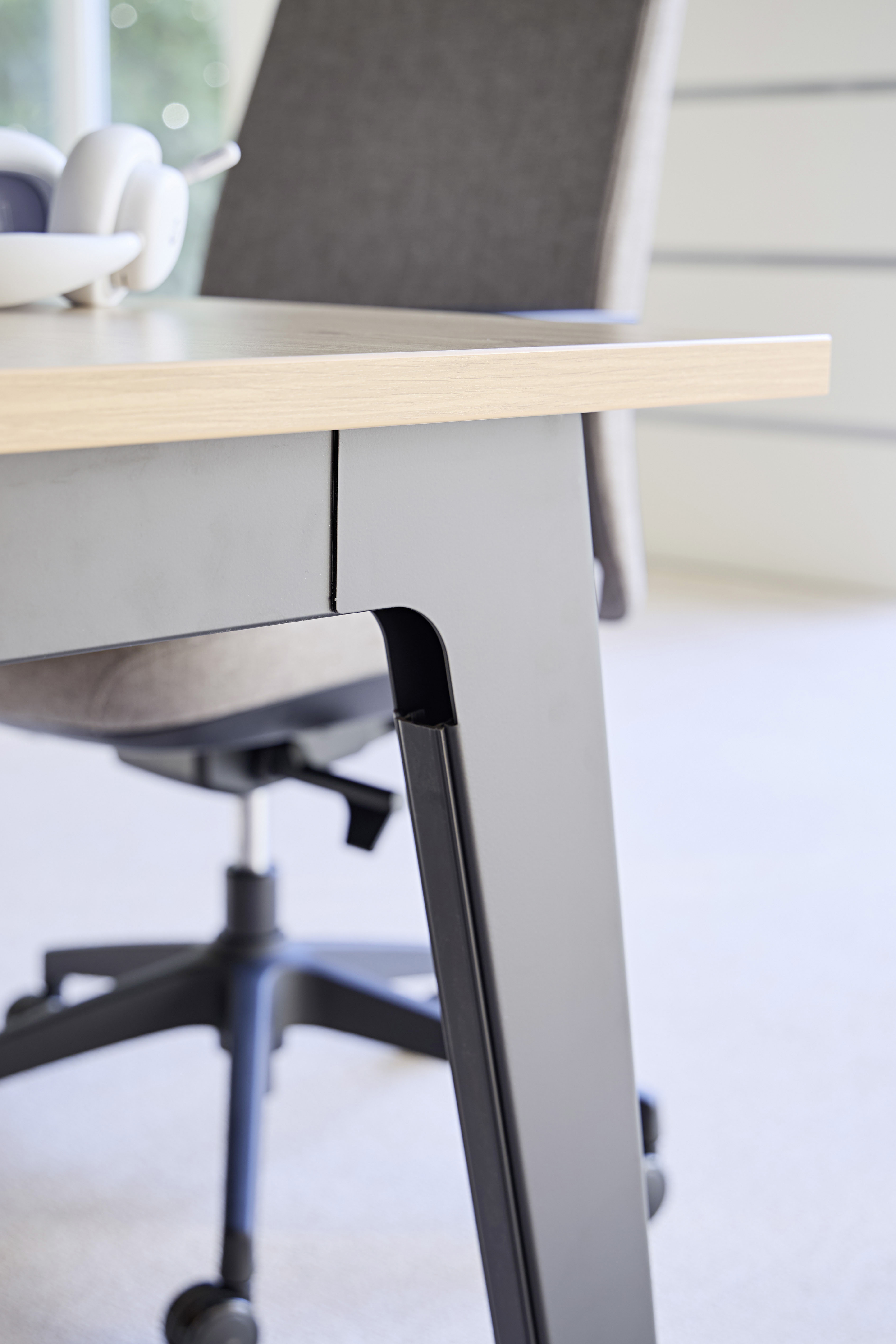 Plateaux robustes de 25 mm avec finition semi-mate chêne clair résistante aux rayures.