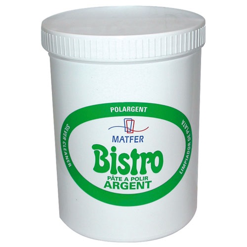 La pâte à polir BISTRO Argent nettoie, ravive et polit votre argenterie. Très apprécié des professionnels pour son efficacité et sa tenue longue durée. Usage alimentaire, non toxique. Brillance immédiate. Emploi facile : appliquer avec l'éponge fournie puis rincez à l'eau chaude. Conditionnement : pot de 1 L.