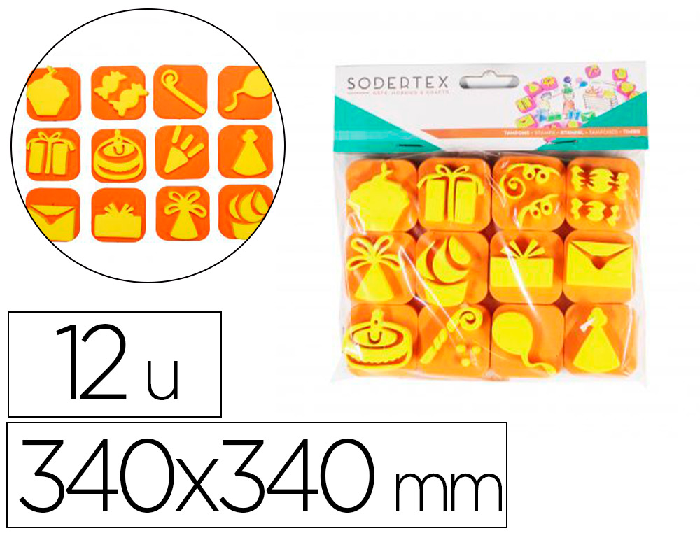Découvrez notre pack de 12 mini tampons en mousse EVA de la marque Sodextex, idéal pour donner vie à vos projets créatifs avec une touche festive. Conçu autour du thème C'est la fête, ce set de tampons est parfait pour ajouter des motifs amusants et colorés à vos créations, que ce soit pour les anniversaires, les célébrations ou tout autre événement spécial.