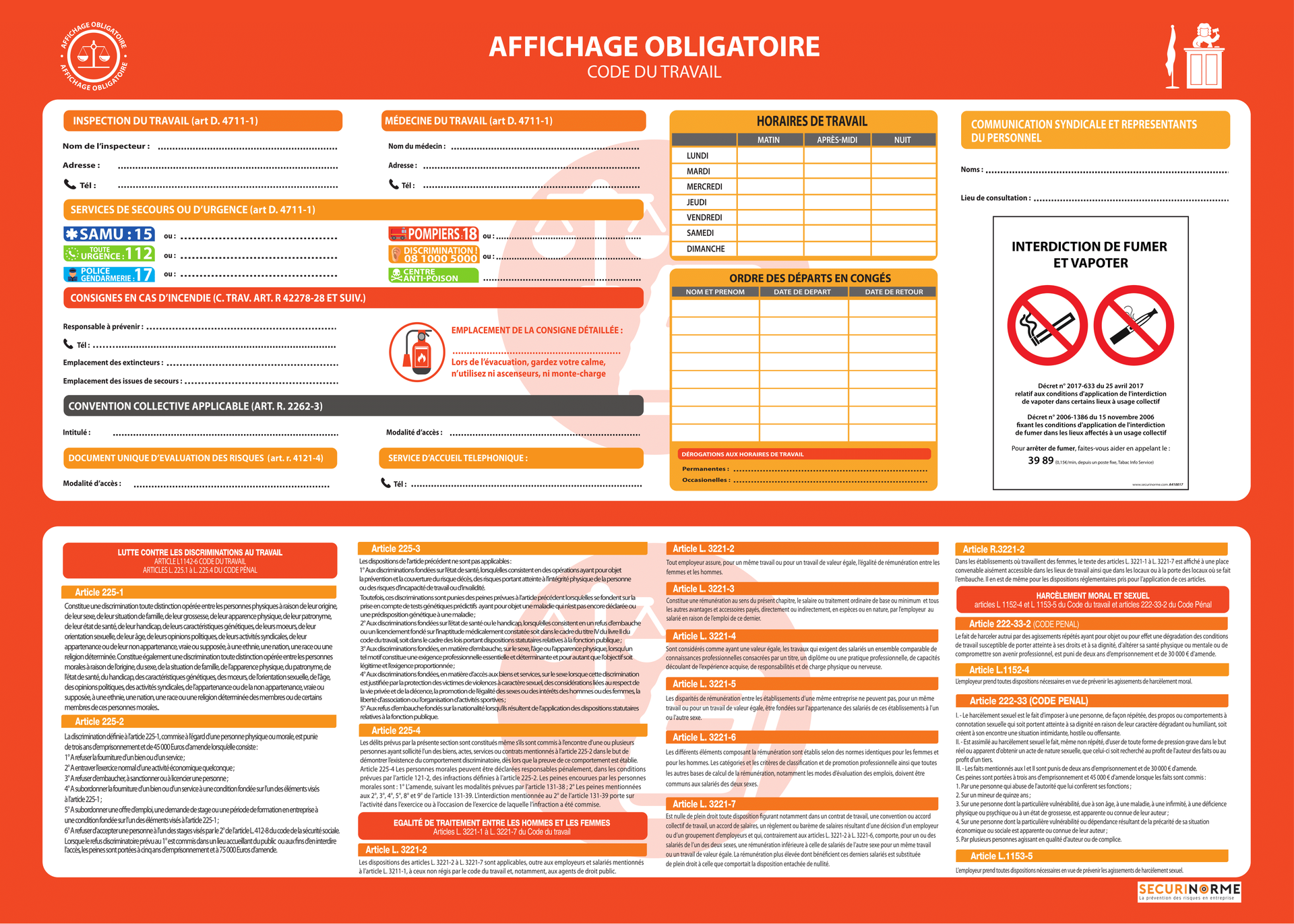 Optimisez la sécurité et la conformité de votre entreprise avec notre Panneau d'Affichage Obligatoire, spécialement conçu pour les entreprises de plus de 11 salariés.