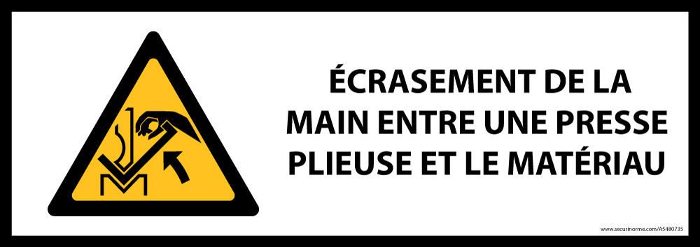 Protégez vos collaborateurs et assurez-vous de la sécurité au travail avec notre Pictogramme de Danger "Écrasement de la Main entre une Presse Plieuse et le Matériau", conforme à la norme ISO 7010. Ce panneau est essentiel pour prévenir les risques liés aux machines industrielles en indiquant clairement les dangers potentiels à proximité des équipements de pliage.