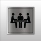 Visibilité optimisée : Le pictogramme représentant trois silhouettes autour d'une table est clairement identifiable, assurant une signalisation immédiate et efficace.