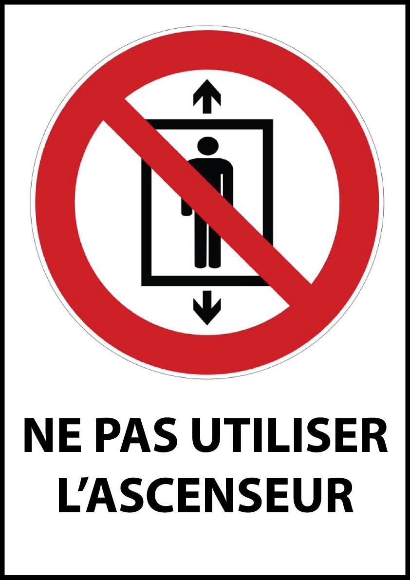 Message : Pictogramme d’interdiction « Ne pas utiliser l’ascenseur »