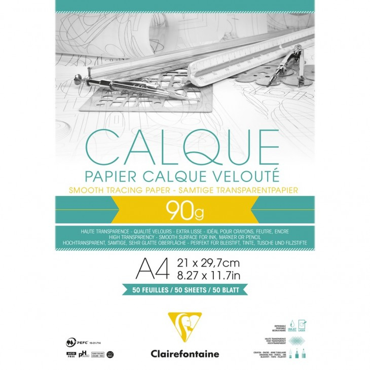 Un large choix de papier calque hautement transparent dédié aux usages techniques et créatifs une belle alternative au plastique, papier parfaitement biodégradable et recyclable, sans acide et de pH neutre. Très résistant, peut être gommé ou gratté sans risque de déchirure. Idéal pour le dessin au crayon graphite, crayon de couleur, feutre, marqueur, stylo technique et encre. Parfaitement stable et pérenne à la lumière, il ne jaunit pas. Egalement imprimables en offset ou en digital. A partir de 90g jet d'encre et pour copieur.