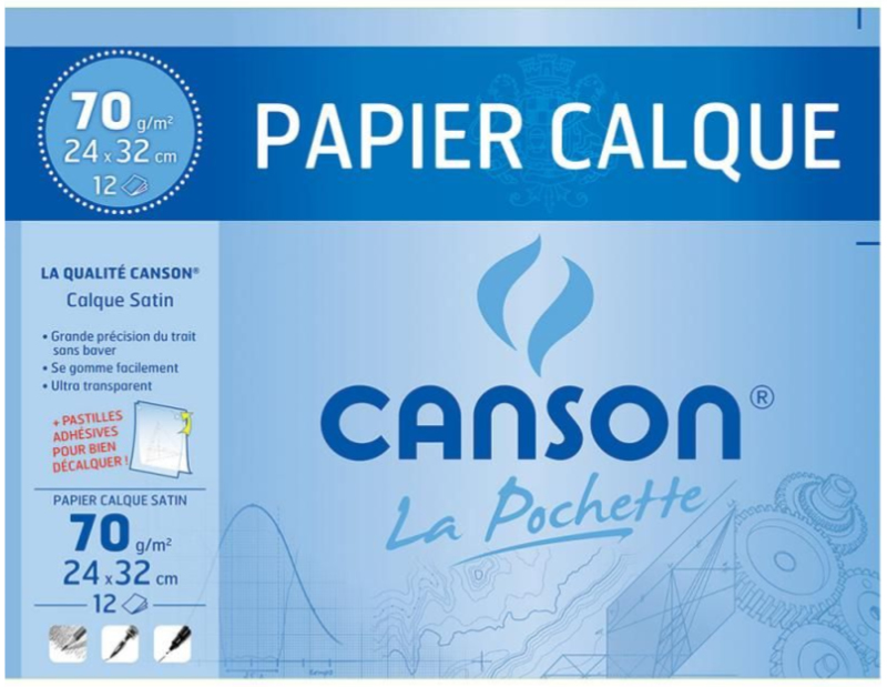 Le papier calque Canson Crayon Encre Dessin Industriel 70/75g au format A3 (420 x 297 mm) se présente en pochette de 10 feuilles. Conçu pour le dessin industriel et technique, il offre une transparence élevée et une surface lisse, idéale pour les travaux de précision au crayon ou à l'encre. Son grammage entre 70 et 75 g/m² garantit une bonne résistance tout en restant fin, permettant ainsi des reproductions fidèles et un usage prolongé sans risque de déchirure ou bavure.