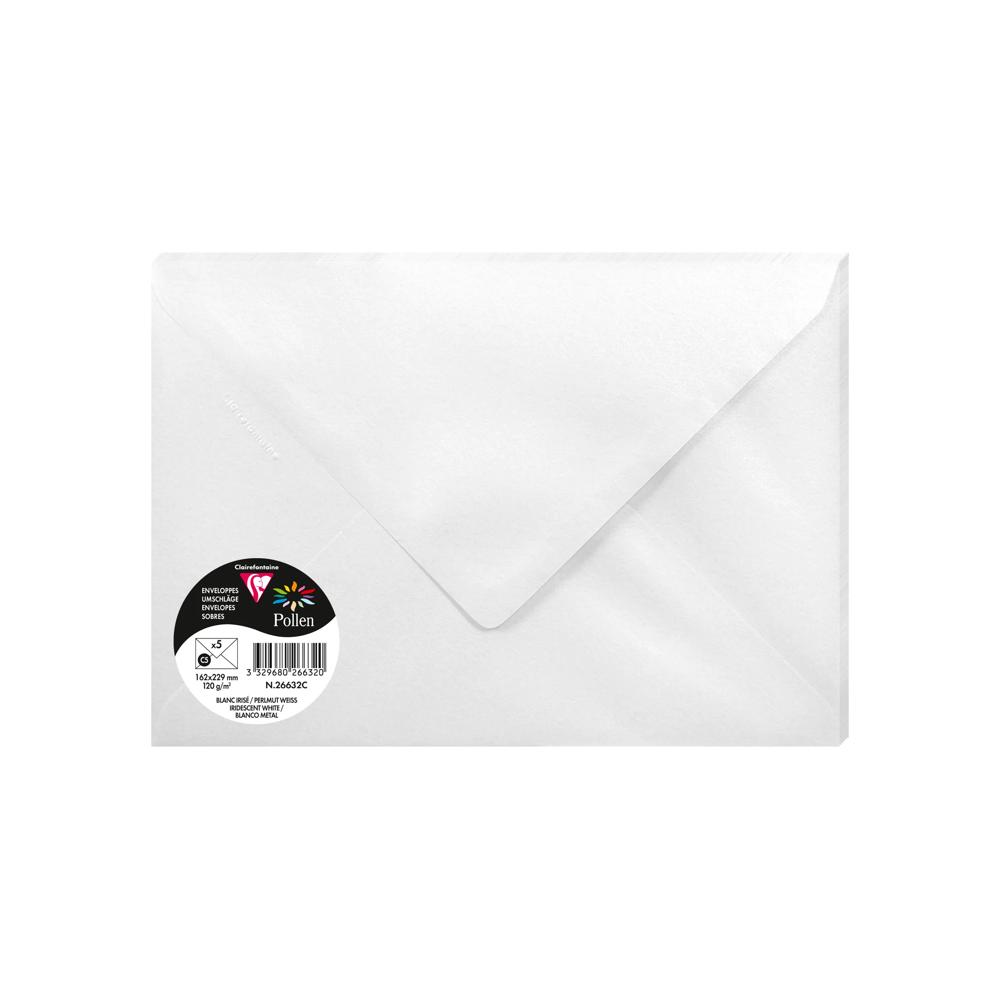 Paquet de 5 enveloppes Pollen 162x229mm 120g/m2 - Blanc irisé