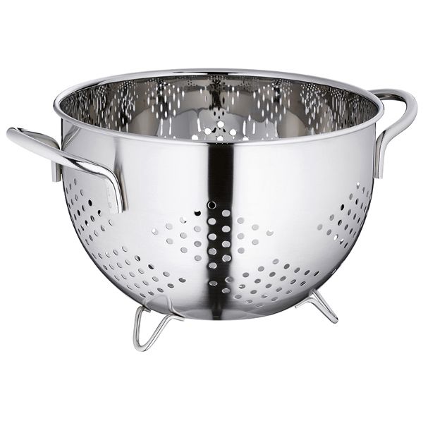 Passoire sur pieds 20 cm - Athos - Pratique pour les égoutter les pâtes, les légumes ou les salades - En acier inox 18/10, épaisseur 7 mm - 3 pieds pour une stabilité parfaite et assurant un support surélevé pour parfaitement évacuer l'eau - 2 poignées latérales pour une manipulation facile - Diamètre 20 cm - Diamètre avec poignées 27.5 cm - Hauteur 14.5 cm - Nettoyage facile : passe au lave-vaisselle.