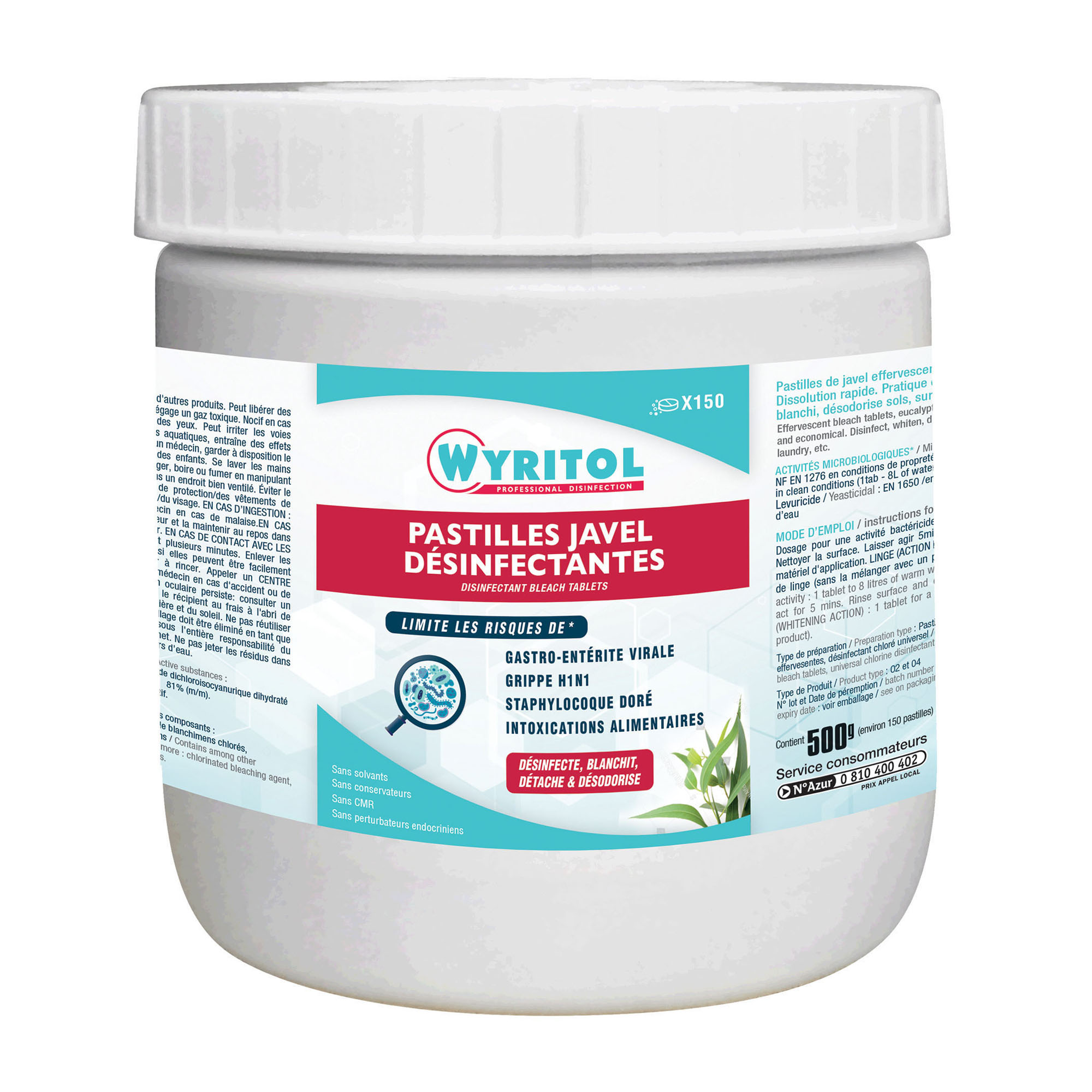 Boîte de 150 pastilles, soit 1 200 litres d’eau javellisée.