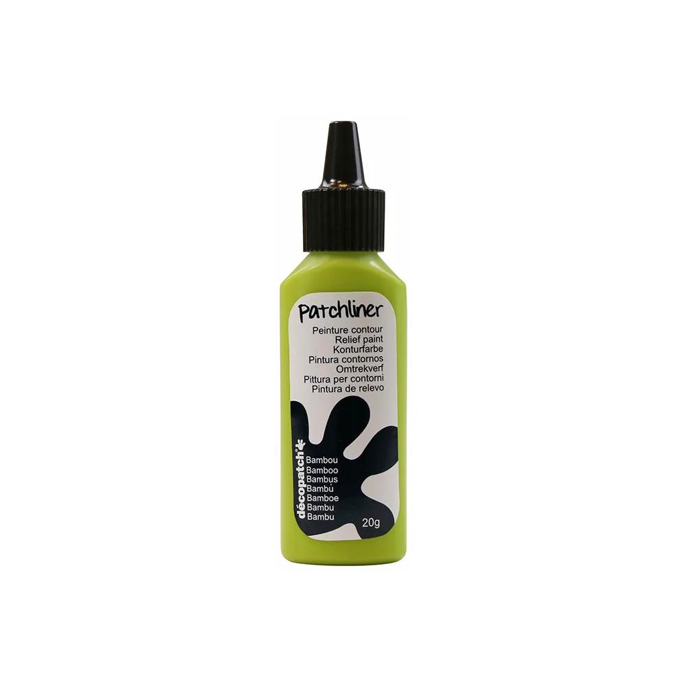 Le patchliner est un cerne-relief qui permet de personnaliser vos créations. A utiliser partout, sur papier, bois, métal, verre, textile... Facile à appliquer, pas besoin d'un contenant différent pour utiliser le Patchliners. Le flacon permet une utilisation précise pour le contour des couleurs ou des formes, sans bavure. Tube de 20 g à presser doucement pour faire sortir le patchliner - pas besoin de pinceau. 0