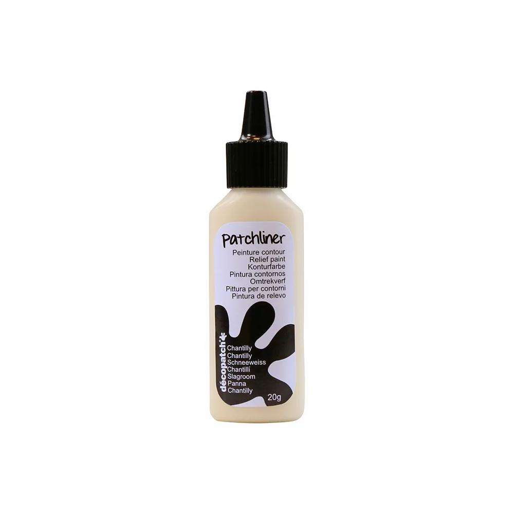 Le patchliner est un cerne-relief qui permet de personnaliser vos créations. A utiliser partout, sur papier, bois, métal, verre, textile... Facile à appliquer, pas besoin d'un contenant différent pour utiliser le Patchliners. Le flacon permet une utilisation précise pour le contour des couleurs ou des formes, sans bavure. Tube de 20 g à presser doucement pour faire sortir le patchliner - pas besoin de pinceau. 0