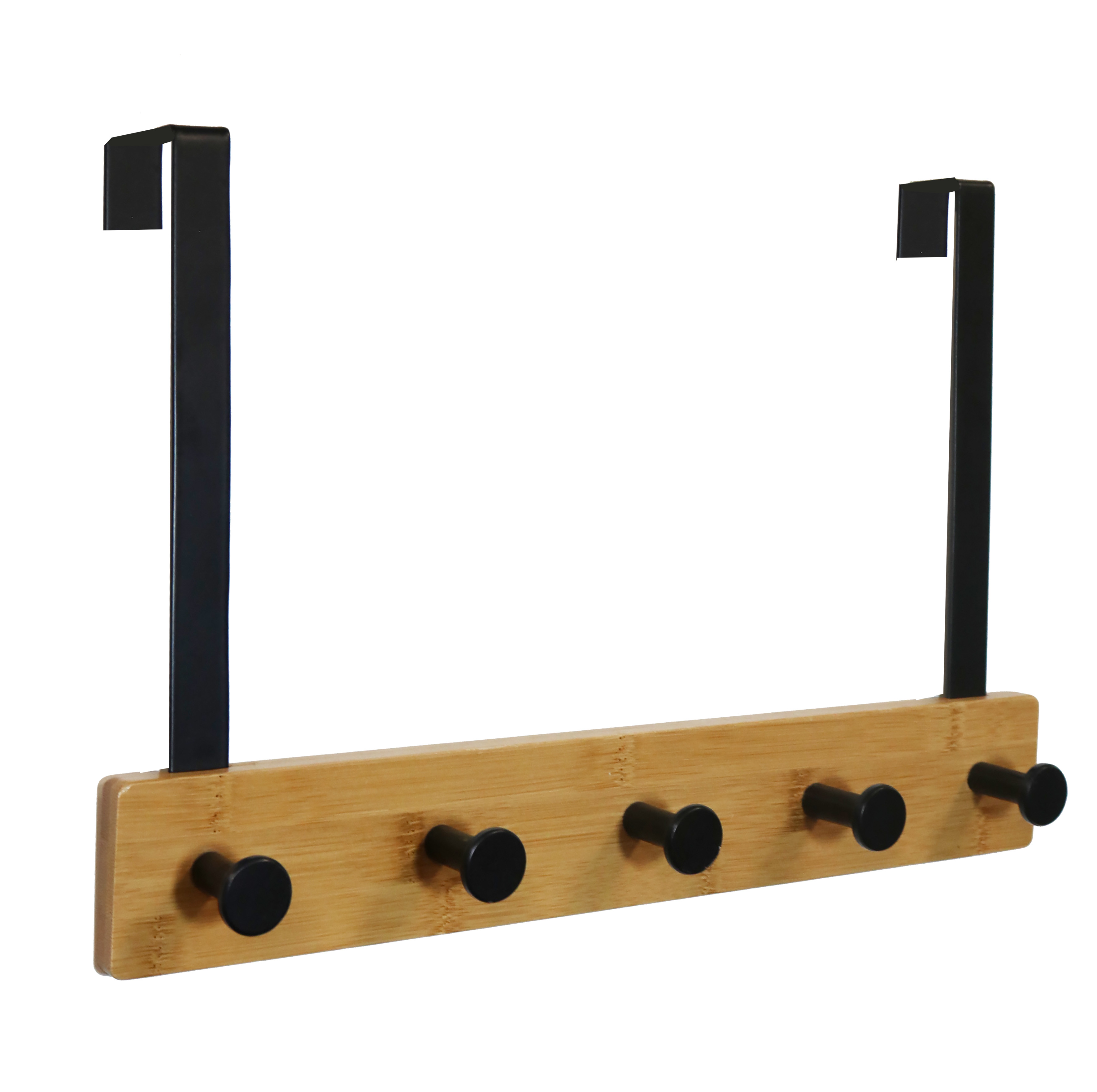 Multifonction : cette patère de porte à 5 crochets offre un espace de suspension pratique pour les manteaux, foulards, ceintures, chapeaux, sacs à main, peignoirs, serviettes et plus encore. Idéal pour les bureaux individuels et les espaces de rangement limité. Elégante: la patère est en bambou naturel et en acier noir. Elle est équipée de mousse de protection pour ne pas abimer vos portes. Cette patère est légère, durable et antirouille. Pratique : placez simplement ces crochets sur votre porte pour une installation rapide et sans outils. Conception respectueuse : les patères rondes sont conçues pour respecter les tissus de vos vêtements.-Robuste : 5 kg maxi par patère. Matériaux : acier peinture époxy et bambou Multifonction : cette patère de porte à 5 crochets offre un espace de suspension pratique pour les manteaux, foulards, ceintures, chapeaux, sacs à main, peignoirs, serviettes et plus encore. Idéal pour les bureaux individuels et les espaces de rangement limité. Elégante : la patère est en bambou naturel et en acier noir. Elle est équipée de mousse de protection pour ne pas abimer vos portes. Cette patère est légère, durable et antirouille.-Pratique : placez simplement ces crochets sur votre porte pour une installation rapide et sans outils.