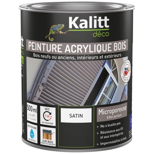 La peinture bois microporeuse satin Extérieur de 500 mL en coloris gris clair de la marque Kalitt Déco est une peinture acrylique PU à base d’eau pour l’intérieur et l’extérieur. Laque acrylique pour des revêtements décoratifs et protecteurs à l’intérieur et à l’extérieur. Est excellent pour le revêtement de bois et de métal apprêté, des plastiques pouvant être peints (par exemple le PVC dur), ainsi que pour les revêtements de rénovation sur tous les anciens revêtements porteurs. Le revêtement séché est conforme à la norme DIN EN 71.3. La composition de la peinture lui confère une haute protection contre les intempéries, l'application est aisée, est renforcé au PU : extrêmement durable, résistant aux chocs et aux impacts, séchage rapide, projetable avec un équipement de projection approprié, résiste à des températures allant jusqu’à 80 °C environ, ne jaunit pas, est à base d’eau.