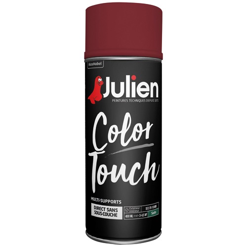 La bombe peinture Color Touch - 400 mL - rouge basque satin de la marque JULIEN s'inscrit parfaitement dans l'air du temps. Idéale pour relooker vos meubles et objets de déco, cette peinture sera vite absorbée sans couler et sans trace ! Sans besoin de sous-couche, cette bombe est multi-supports. Caractéristiques de la peinture : Format : aérosol Gamme : Color Touch. Usage : intérieur et extérieur. Utilisation : bois, osier, métal, aluminium, acier, verre, terre cuite, céramique, pierre, marbre, fibre de verre, plastiques et papier. Coloris : rouge basque. Finition : satinée. Contenance : 400 mL.