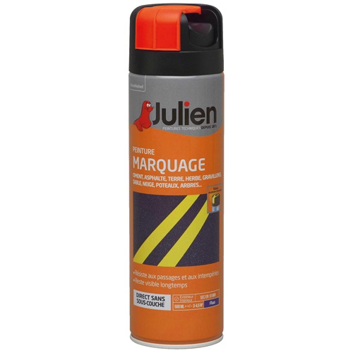 La bombe peinture marquage - 500 mL - orange fluo de la marque JULIEN est idéale pour les secteurs du bâtiment, des travaux publics, de l'industrie, de la forêt ou encore des collectivités. Multi-supports, elle sera idéale quelle que soit l'utilisation que vous souhaitez en faire ! Tête vers le haut, le bas ou sur le côté, grâce à sa tête multidirectionnelle 360°, tout deviendra facile ! Caractéristiques de la peinture : Format : aérosol. Usage : intérieur et extérieur. Utilisation : multi-supports (asphalte, béton, ciment, terre, herbe, arbre, etc.). Coloris : orange fluo. Contenance : 500 mL. Référence : n°84.