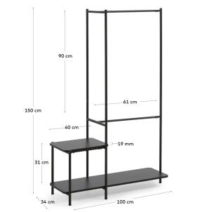 Penderie avec banc Galatia en mélaminé et métal laqué noir 100 x 150 cm