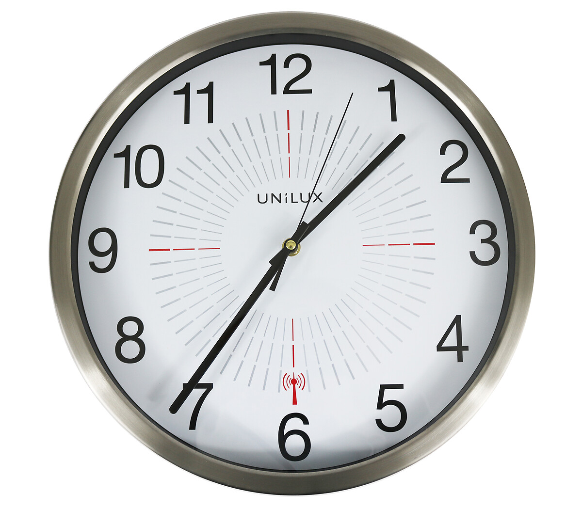 Waterproof: grâce à son système d’étanchéité IP41, cette horloge au cadre métallique de qualité convient aussi bien pour l’intérieur que pour l’extérieur. Radio pilotée: l’heure s’ajuste automatiquement de façon permanente par des ondes radio depuis l’horloge atomique de Mainflingen. Grande précision: 1 seconde d’écart maxi en 1 million d’années. Ergonomie : grâce à son système silencieux, la trotteuse n'émet aucun bruit créant un cadre propice à la concentration pour le travail. Ce produit est disponible sous les versions de couleurs suivantes : Gris Métal