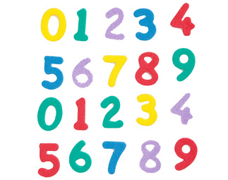 Description détailléeChiffres 0 à 9, taille des motifs: 15 x 15 mm, 5 plaquettes assorties dans les couleurs: rouge, violet, bleu, vert, jaune, contenu: 150 chiffres