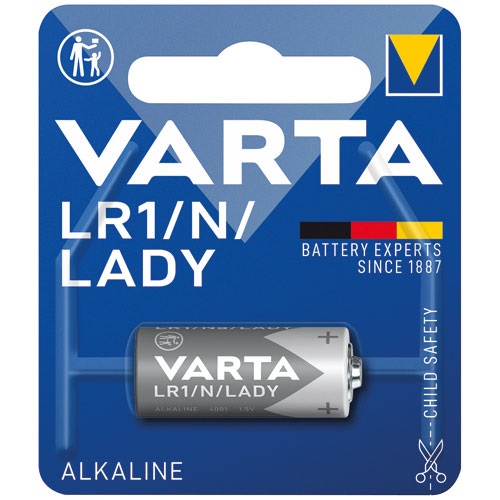 La pile cylindrique Alcaline LR1 / Lady / N lot de 1 de chez Varta est une pile alcaline de haute qualité, sans mercure, présentées dans des formats spécifiques, idéales pour les appareils électroniques nécessitant une alimentation fiable. Elles sont parfaites pour les besoins énergétiques quotidiens d'applications telles que les jouets, les appareils médicaux, les calculatrices, les télécommandes et de nombreux autres petits appareils électroniques. Qualité et longévité optimales garanties. Varta propose une large gamme de piles alcalines boutons et cylindriques.Faible autodécharge et longue autonomie, sans mercure. Conçu pour les applications de veille et d'impulsion à usage professionnel et privé. Varta, experts en batteries depuis 1887. Performances élevées garanties et durée de conservation prolongée jusqu'à 3 ans. Détails : système chimique manganèse alcaline primaire, IEC désignation LR1, tension 1.5V, hauteur 30.2 millimètres, diamètre 12 millimètres, poids 10 gr.