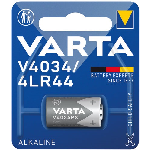 La pile cylindrique Alcaline V4034PX / 4LR44 lot de 1 de chez Varta est une pile alcaline de haute qualité, sans mercure, présentées dans des formats spécifiques, idéales pour les appareils électroniques nécessitant une alimentation fiable. Elles sont parfaites pour les besoins énergétiques quotidiens d'applications telles que les jouets, les appareils médicaux, les calculatrices, les télécommandes et de nombreux autres petits appareils électroniques. Qualité et longévité optimales garanties. Varta propose une large gamme de piles alcalines boutons et cylindriques.Faible autodécharge et longue autonomie, sans mercure. Conçu pour les applications de veille et d'impulsion à usage professionnel et privé. Varta, experts en batteries depuis 1887. Performances élevées garanties et durée de conservation prolongée jusqu'à 3 ans. Détails : système chimique manganèse alcaline primaire, IEC désignation 4LR44, tension 6V, hauteur 25.2 millimètres, diamètre 13 millimètres, poids 10.15 gr.