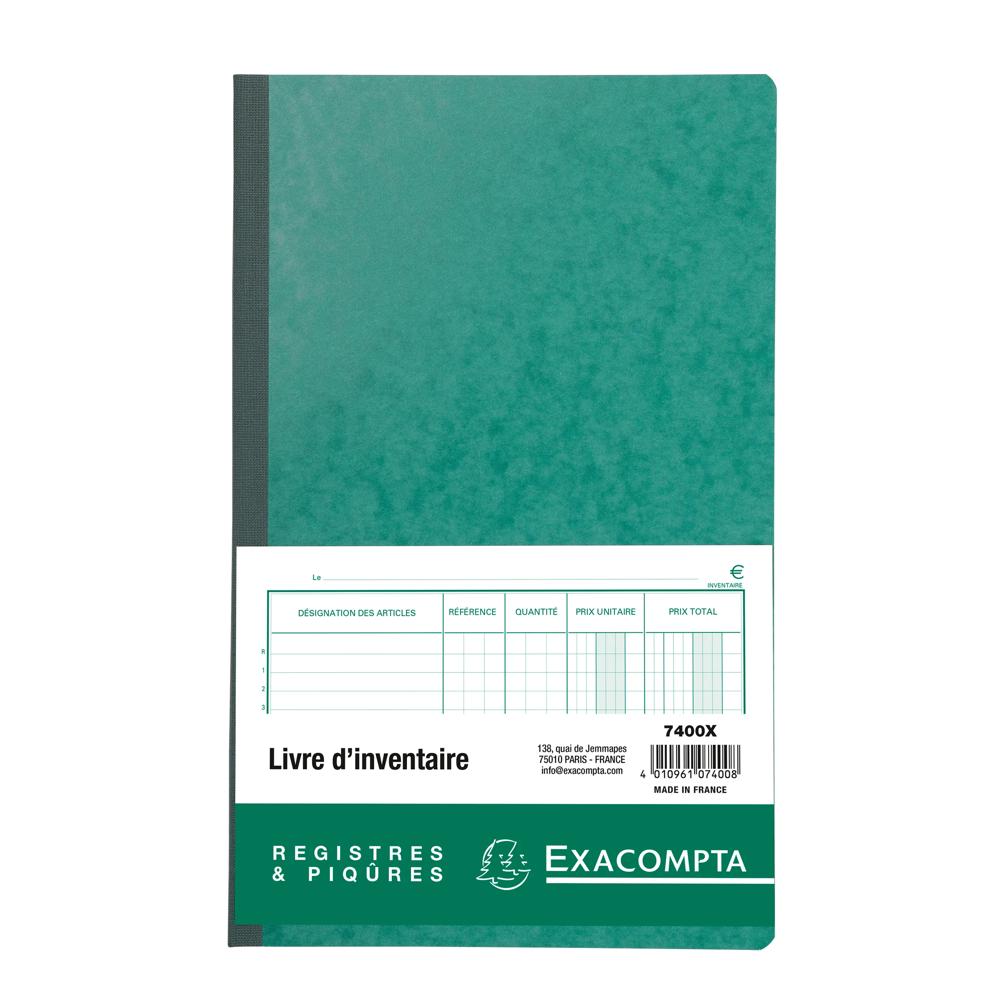 En fin d'exercice comptable, il y a obligation de passer en revue tous les avoirs et toutes les dettes (bilan et compte de résultats) et d'ajuster éventuellement leurs montants. Le livre des inventaires doit contenir les inventaires et les règles d'évaluation de ceux-ci. Loi du 17 juillet 1975 - Article 7 Toute entreprise procède une fois l'an au moins, avec bonne foi et prudence, aux opérations de relevé, de vérification, d'examen et d'évaluations nécessaires pour établir, à la date choisie, un inventaire complet de ses avoirs et droits, de ses dettes, obligations et engagements, de toute nature, relatifs à son activité et des moyens propres qui y sont affectés. Les comptes annuels et les pièces de l'inventaire qui les constituent sont transcrits dans un livre. Les pièces dont le volume rend la transcription difficile sont résumées dans le livre auquel elles sont annexées. La clarté des tracés Exacompta et leur qualité d'impression avec une encre verte spéciale sont reconnues et appréciées depuis des années. Le Papier 110 g/m2 est légèrement teinté, spécialement étudié pour reposer la vue, et mat pour une écriture facile et nette Il est certifié FSC®, un mode de gestion responsable des forêts. La couverture en carte lustrée est issue de nos papeteries Clairefontaine, elle est noble, rigide, résistante et écologique. Les piqûres et registres Exacompta sont fabriqués à 100% en France.