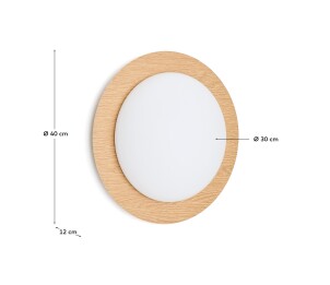 Plafonnier Novae en acier brossé effet bois clair et verre dépoli Ø 40 cm