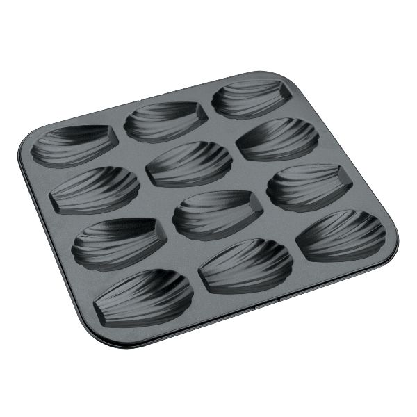 Plaque 12 madeleines - Moka - Pour retrouver la saveur des madeleines de votre enfance ! - Réalisez de délicieuses madeleines dorées faites maison ! - En métal avec revêtement antiadhérent - Dimensions 25 x 21 cm - 12 cavités - Compatible four traditionnel - Nettoyage facile : passe au lave-vaisselle.