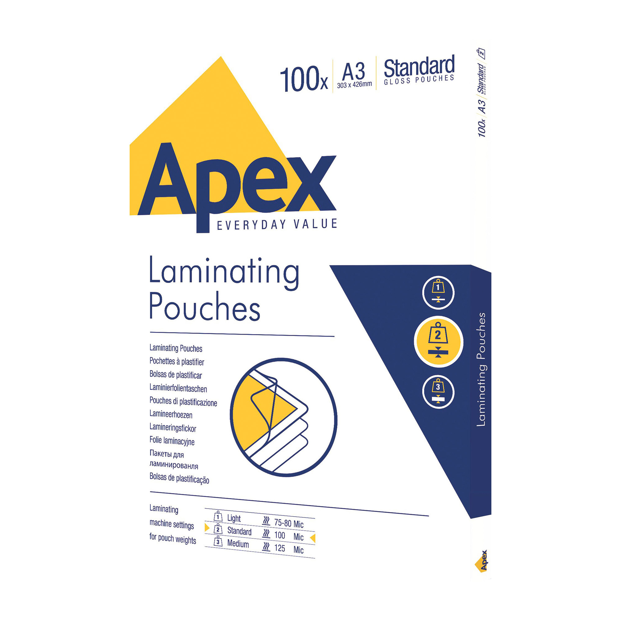 Pochette de plastification Apex A3 2 x 90 µ brillantes – Boîte de 100