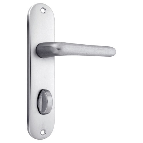 La poignée de porte intérieur Courchevel sur plaque entraxe 165 mm condamnation alu argent de chez Alpertec est une garniture sur plaque. L'ensemble de 2 poignées de porte intérieure, design en aluminium anodisé argent , avec 1 bouton de condamnation côté intérieure pour salle de bains ou WC, toilettes. Matière de la plaque : Aluminium. Matière de la poignée : Aluminium. Finition de la plaque : Argent. Finition de la poignée : Argent. Accessoires fournis : 2 vis relieuses 4 x 45 mm. 1 carré de 7 x 95 mm. Entraxe fixation (mm) : 165. Entraxe béquille/ trou de perçage (mm) : 70. Largeur plaque (mm) : 39. Hauteur plaque (mm) : 185. Saillie de la béquille (mm) : 53. Ressort de rappel : Non. Epaisseur de porte (mm) : 36 à 44.