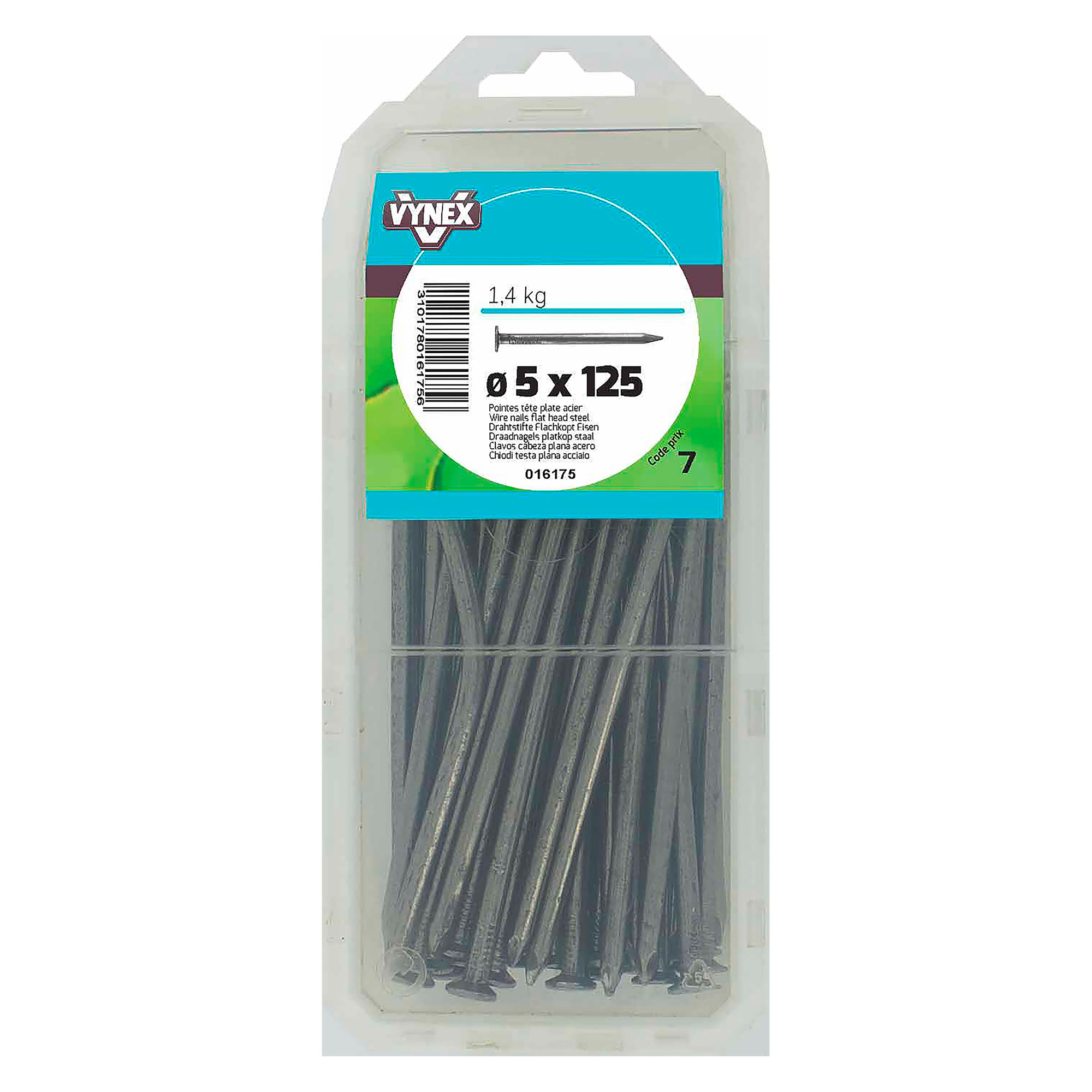 Clous à tête plate Ø 5 x L 125 mm, parfaits pour vos travaux de menuiserie. Assurent une fixation solide bois sur bois ou contreplaqué sur bois. Tête plate idéale pour un arrache-clou, pratique en cas de démontage. Finition soignée pour un rendu propre sur cadres, parquets ou lambris. Paquet de 1 400 clous.