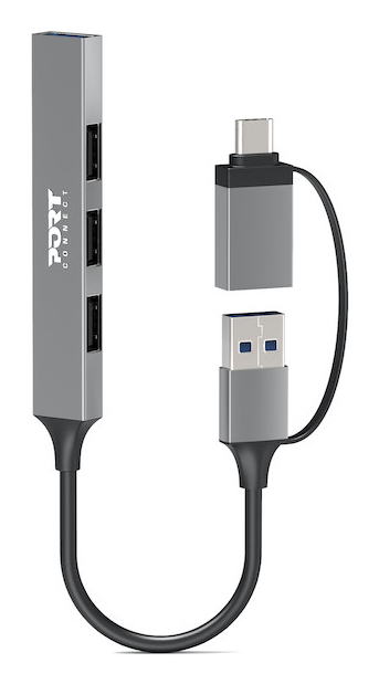 Port Designs 900160. Interface de l'hôte: USB Type-C, Interfaces Hub: USB 3.2 Gen 1 (3.1 Gen 1) Type-A. Taux de transfert de données: 5000 Mbit/s, Couleur du produit: Argent, Matériau du boîtier/corps: Aluminium. Tension d'entrée: 5 V, Courant d'entrée: 3 A, Tension de sortie: 5 V. Prise en charge du système d'exploitation Mac: MacOS. Largeur: 97 mm, Profondeur: 0,8 mm, Hauteur: 15 mm