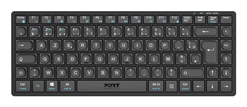 Port Designs 911001FR. Technologie de connectivité: Avec fil &sans fil, Interface de l'appareil: RF sans fil + Bluetooth, Disposition des touches du clavier: AZERTY. Longueur de câble: 1,5 m. Utilisation recommandée: maison/bureau. Couleur du produit: Noir
