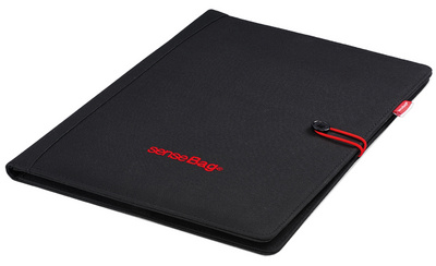 un bouton, avec 3 passants à stylos couleur rouge, pour