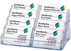 Description détailléeÀ 8 compartiments, aspect cristal, pour jusqu'à 8 x 70 cartes de visite d'une largeur largeur maximale de 94 mm