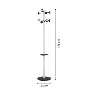 Tête 8 patères. Porte-parapluie réglable en hauteur avec réceptacle.
