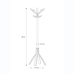 Ce portemanteau tout bois se compose d'une tête rotative avec 5 patères en bois à embouts larges, de 5 crochets en bois ainsi que d'une large base à 4 pieds. Fût tout bois Ø 42 mm. Socle lesté Ø 55 cm.