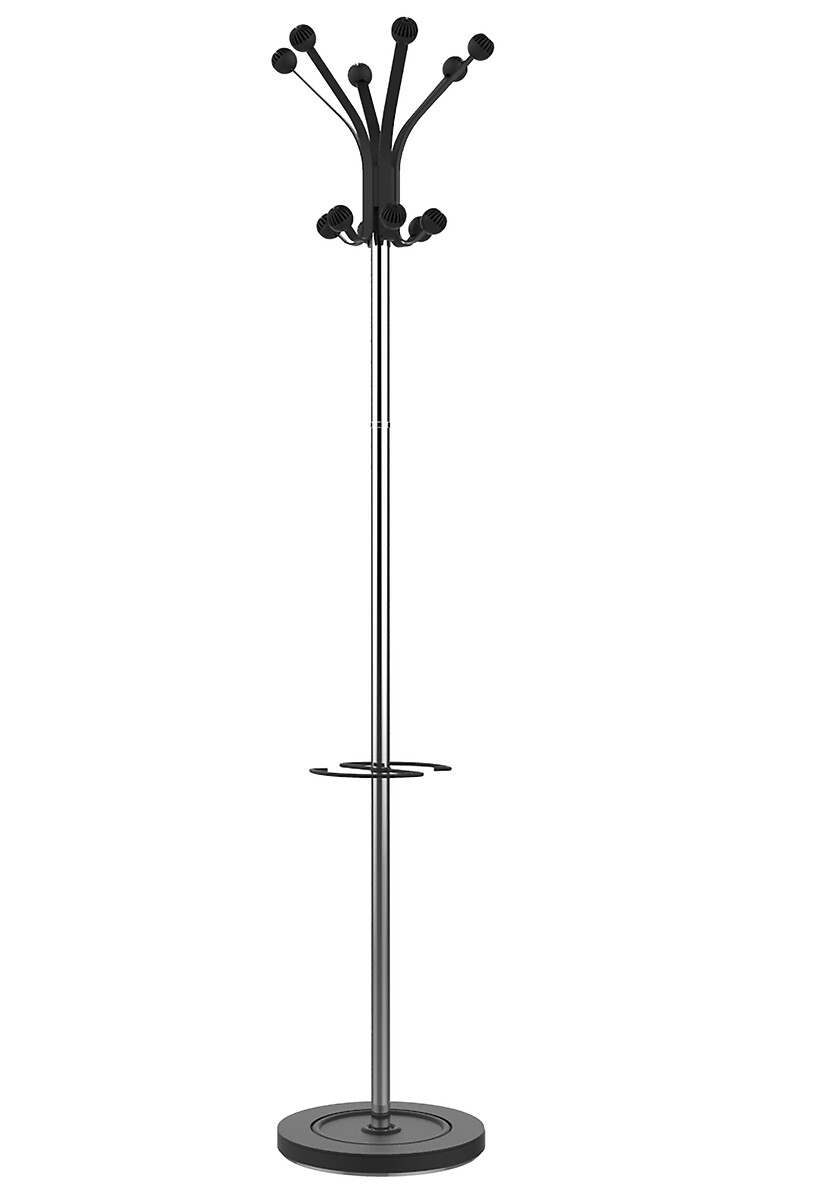 Design contemporain : son allure dynamique, ses belles finitions en chrome font de ce portemanteau l'accessoire idéal pour votre bureau. Fonctionnel : ce portemanteau à tête tournante dispose de 12 patères en forme de lamelles demi-sphérique assure le parfait maintien des manteaux. Astucieux : équipé d'un porte-parapluie pouvant accueillir jusqu'à 6 parapluies en simultané et égouttoir. Ce produit est disponible sous les versions de couleurs suivantes : Assorti : Chrome/Noir