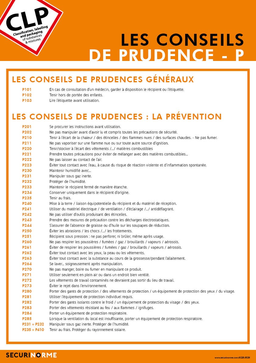 Poster Plastifié CLP – Conseils de Prudence P – Format A3