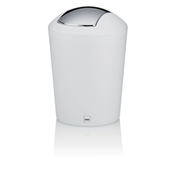 Poubelle 1.7 L Blanche - Marta - Gamme Marta : la beauté en toute sobriété ! - Cette gamme est parfaite pour équiper votre salle de bain : des produits beaux, fonctionnels et à prix tout doux - Une poubelle de table élégante à la taille idéale pour votre salle de bain mais elle peut aussi trouver sa place dans votre cuisine ! - A poser sur votre meuble de salle de bain ou sur votre plan de travail en cuisine - Poubelle en plastique PP finition mate - Couvercle pivotant arrondi en plastique ABS, partie pivotante chromée - Couvercle facile à enlever pour vider votre poubelle - Diamètre 15 cm - Hauteur 21 cm.